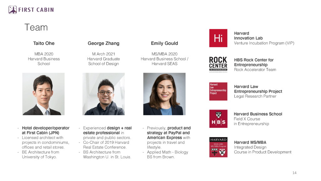 Co-founded with Taito Ohe (HBS ’20) and Emily Gould (MS/MBA ’20), FCNA is a hospitality venture aimed at making comfortable lodging in big cities more affordable through modular construction, technology, and service innovation.